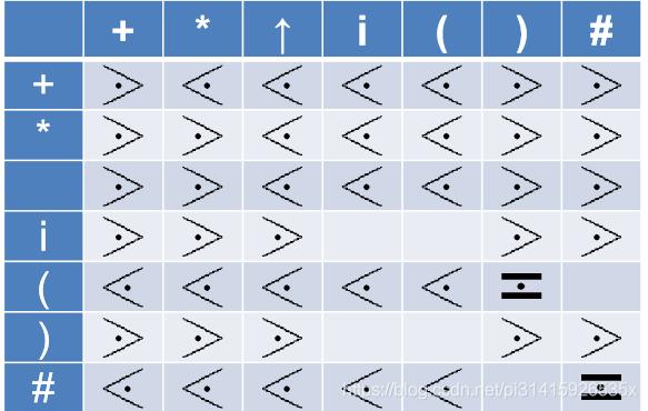 任何两个可能相继出现的终结符a与b可能三种 优先关系 :
